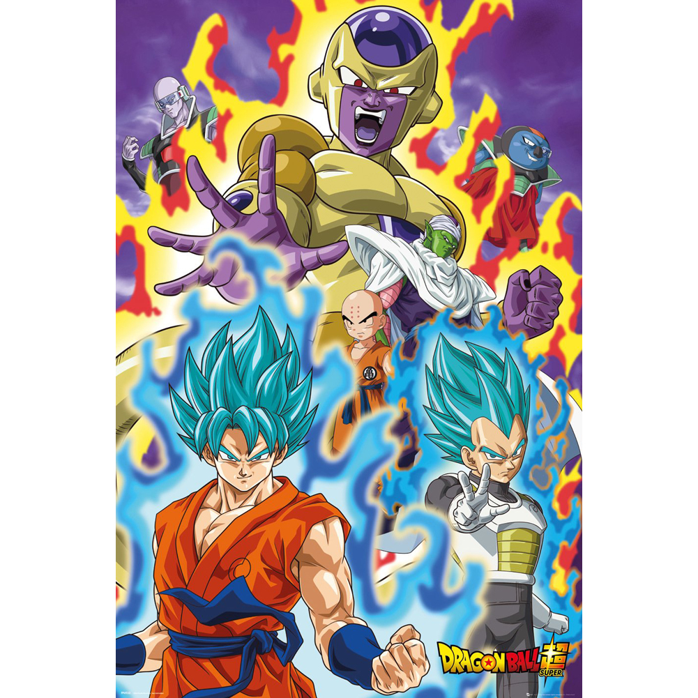 Rolled maxi poster. Features characters from the Dragon Ball Z TV series. High resolution artwork. Printed on 150gsm gloss paper.
