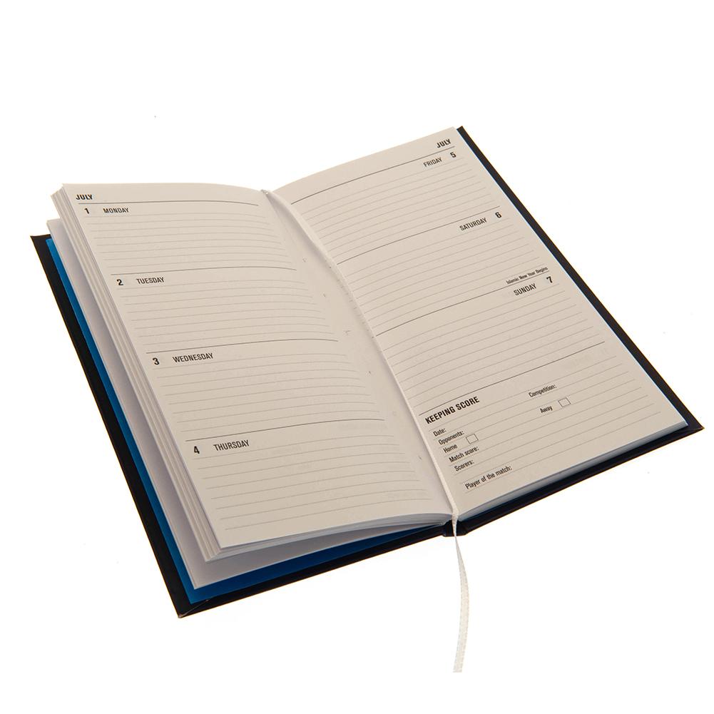 Lightweight 2024 week to view diary. Navy blue hardback diary featuring the Tottenham crest.